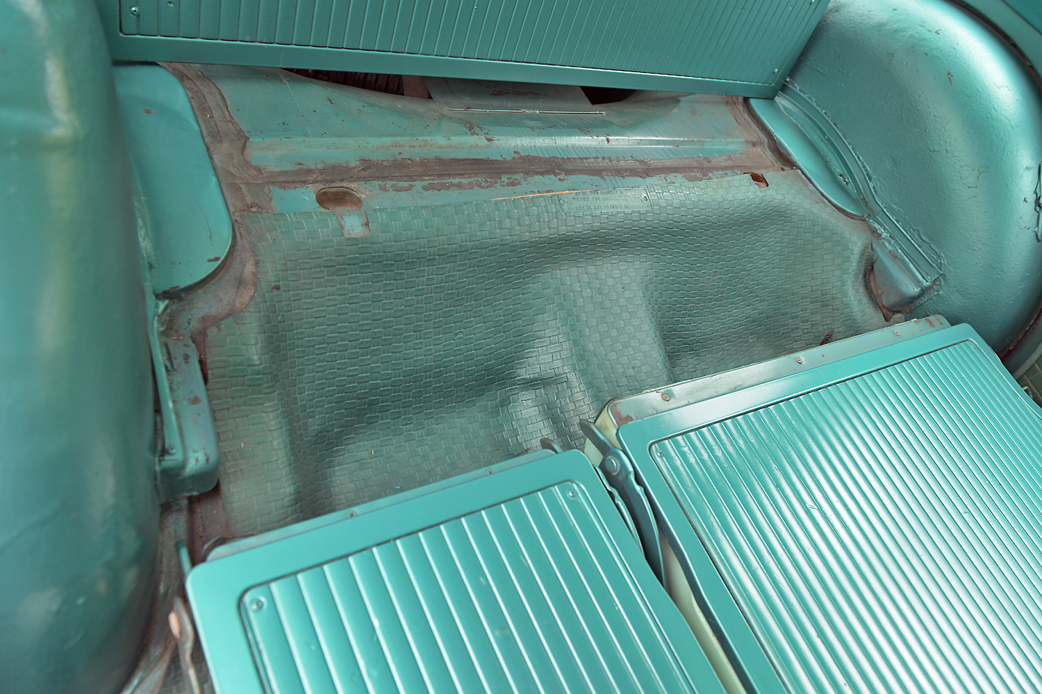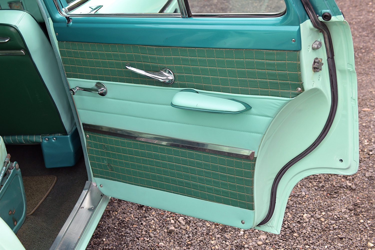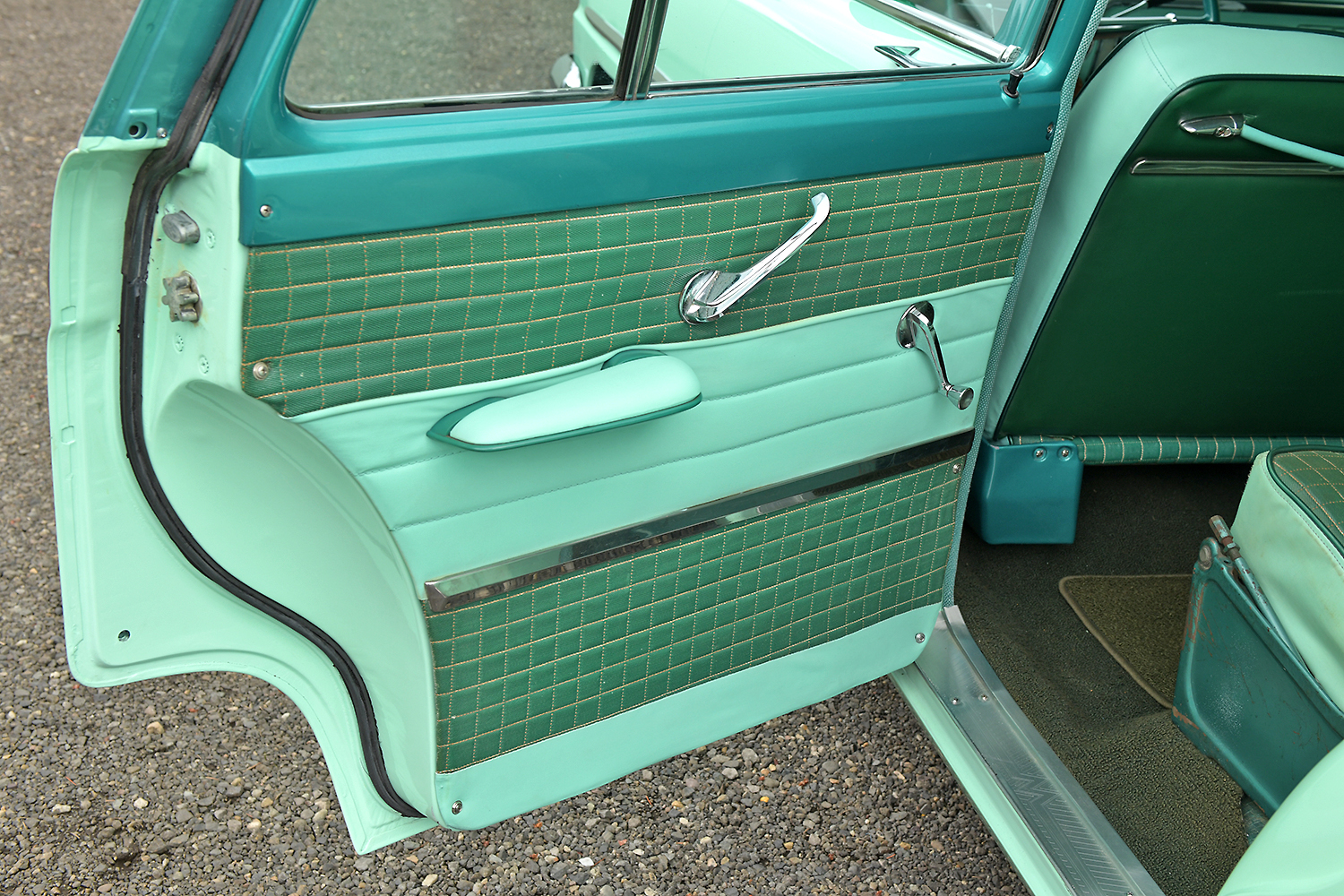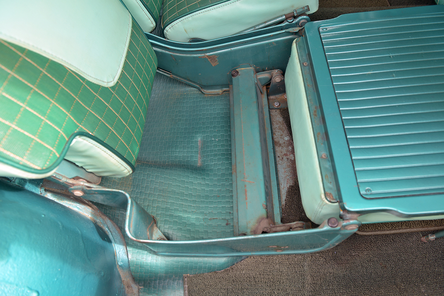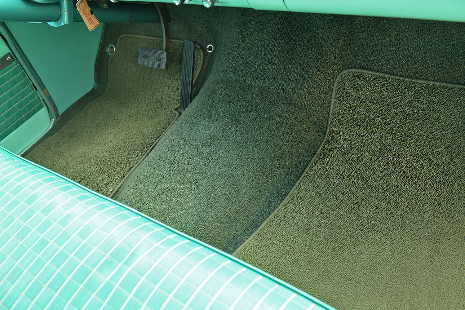 The interior is done in "Green Square Chromatex". The front seat was redone using NOS materials, the remainder is original.