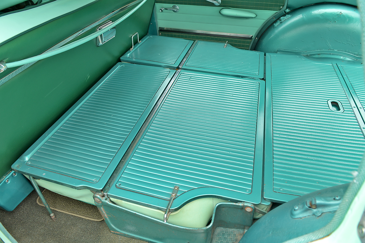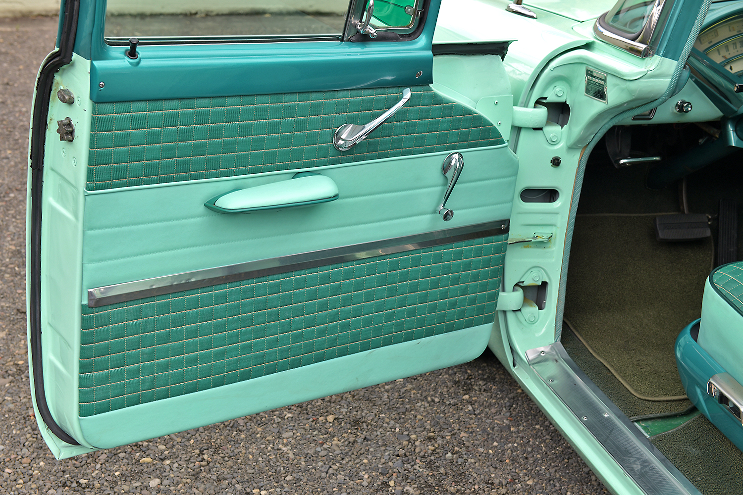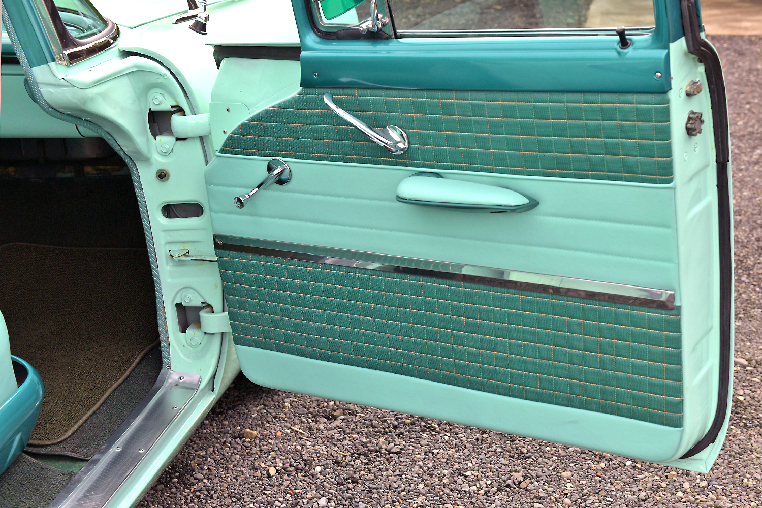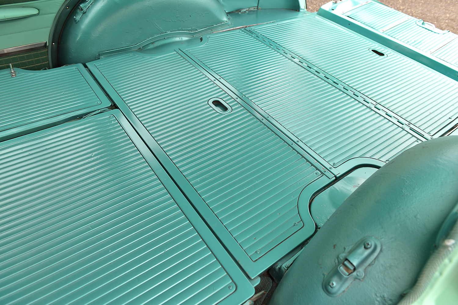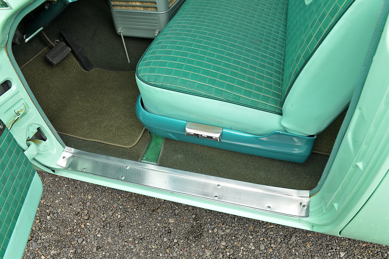 The interior is done in "Green Square Chromatex". The front seat was redone using NOS materials, the remainder is original.