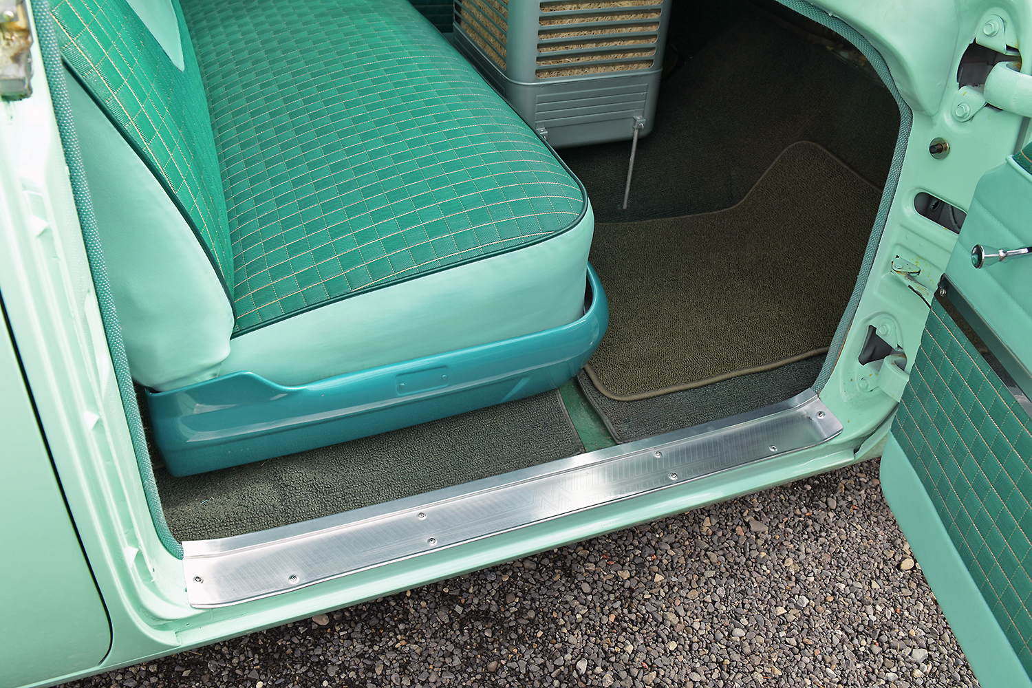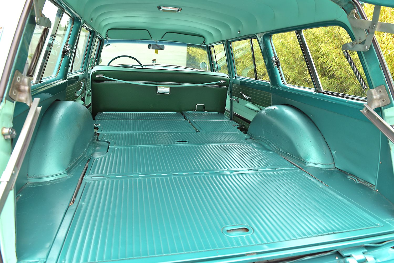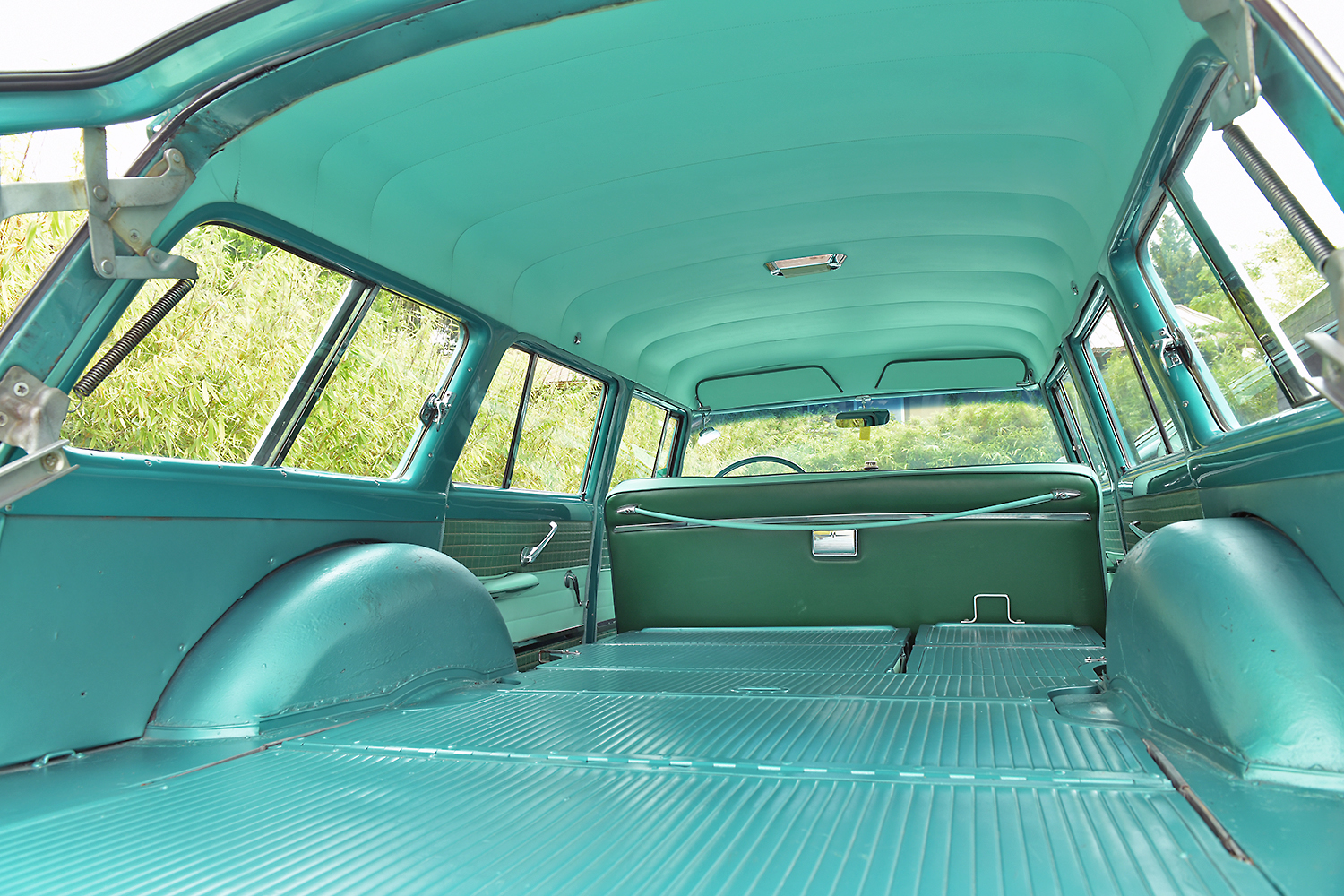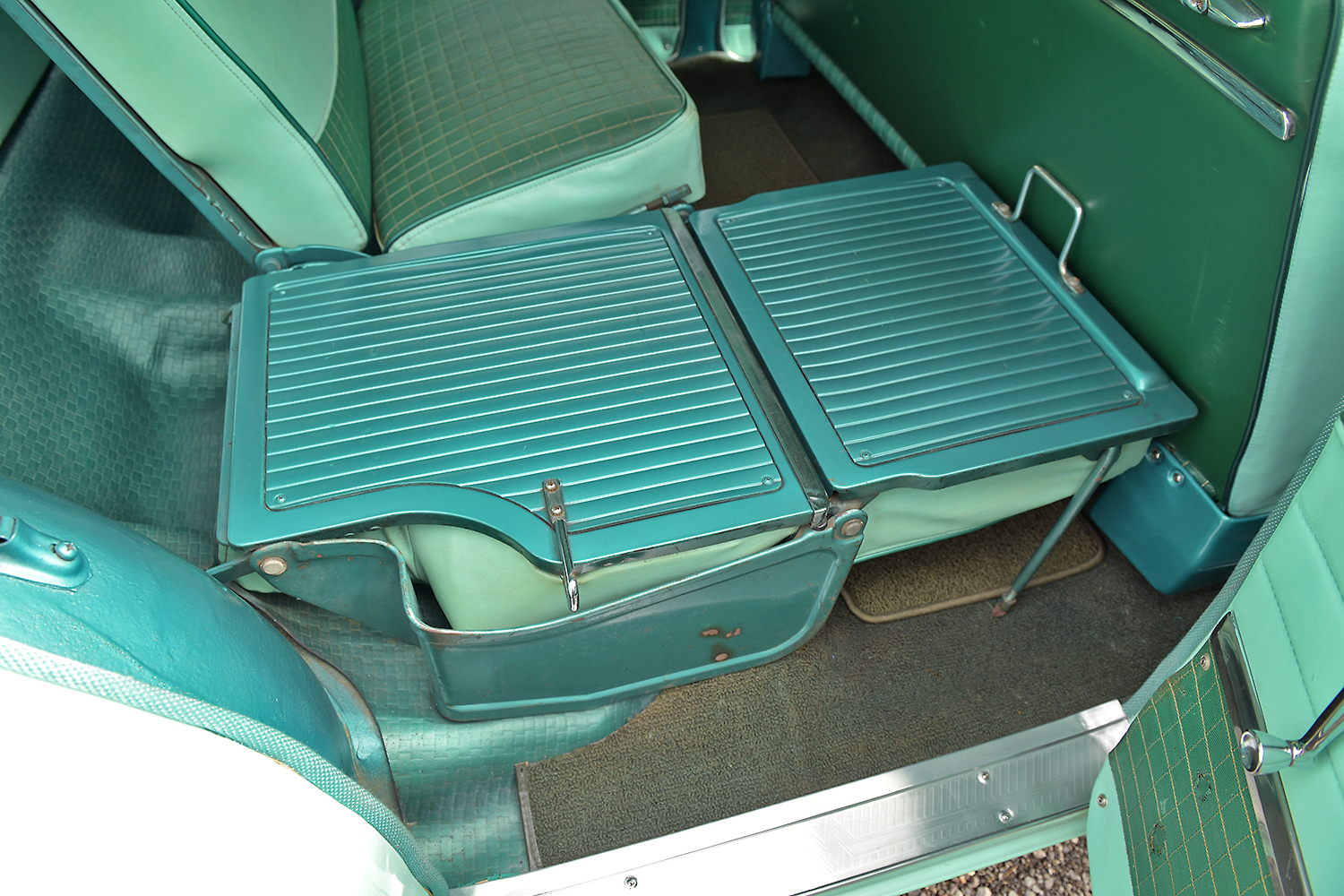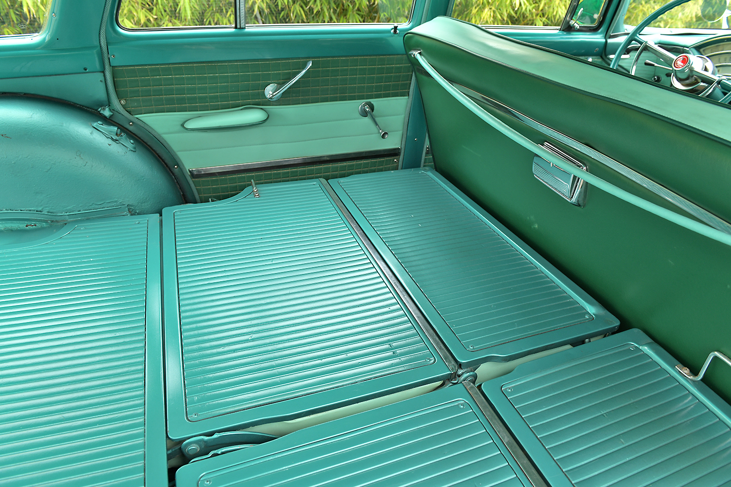 The interior is done in "Green Square Chromatex". The front seat was redone using NOS materials, the remainder is original.