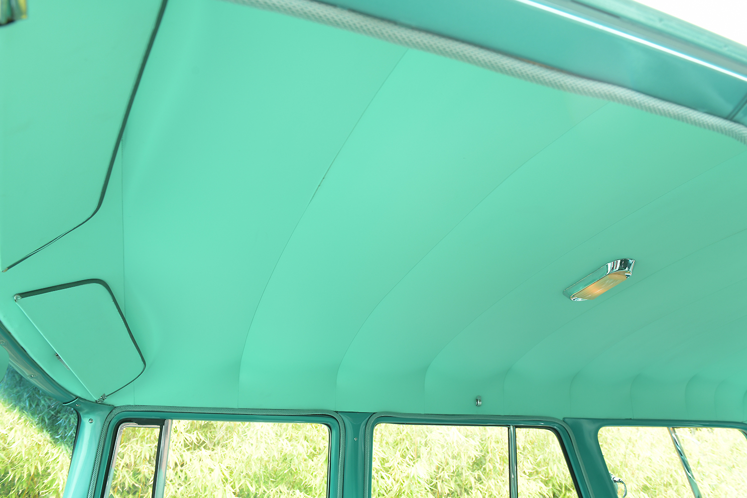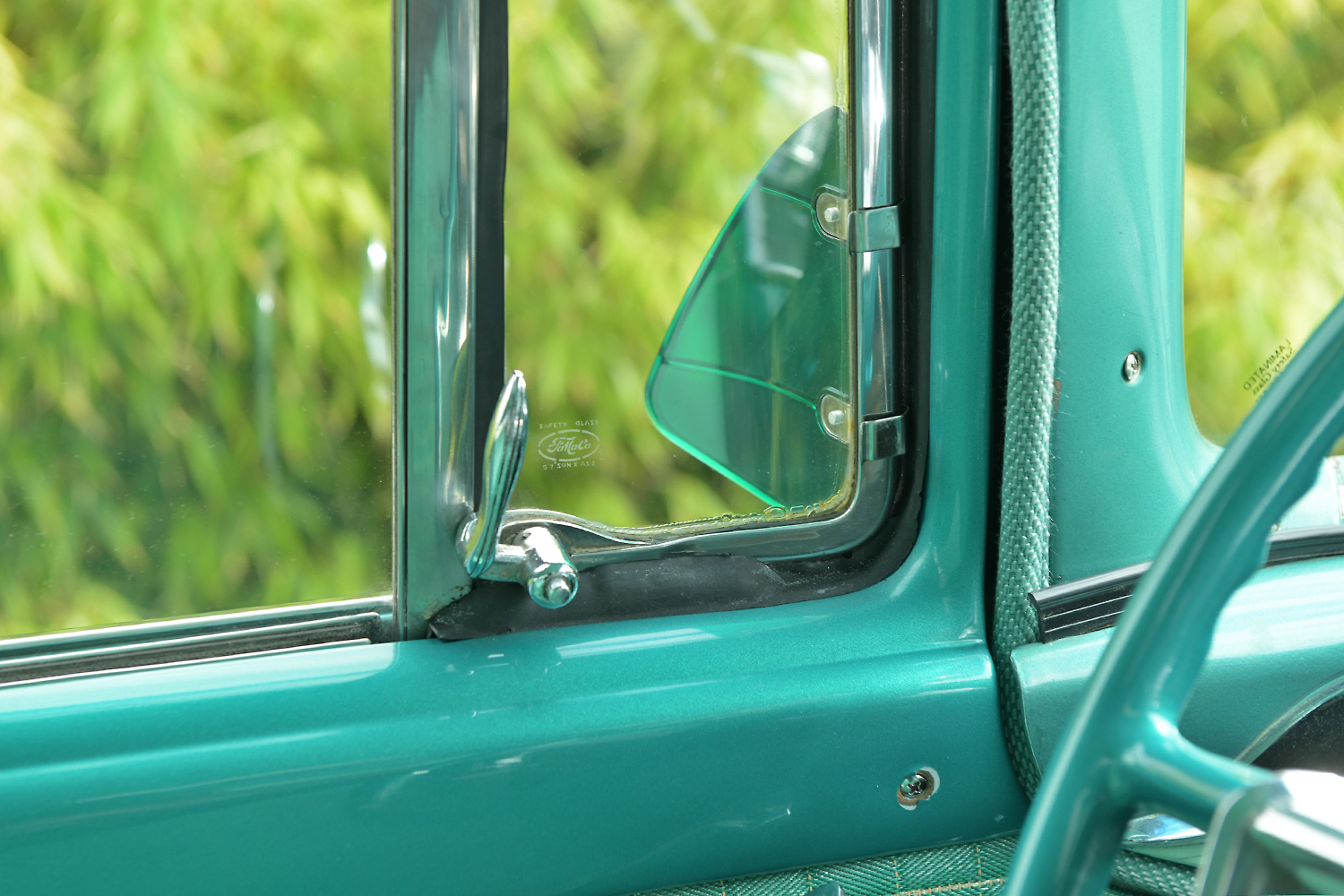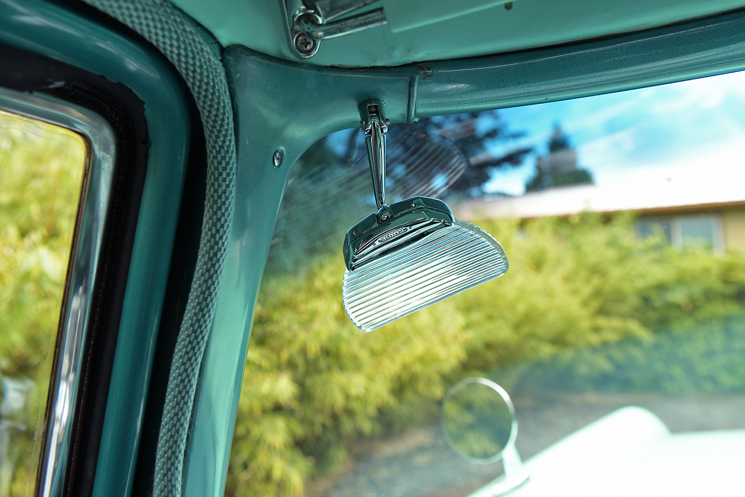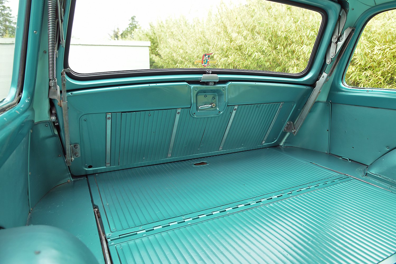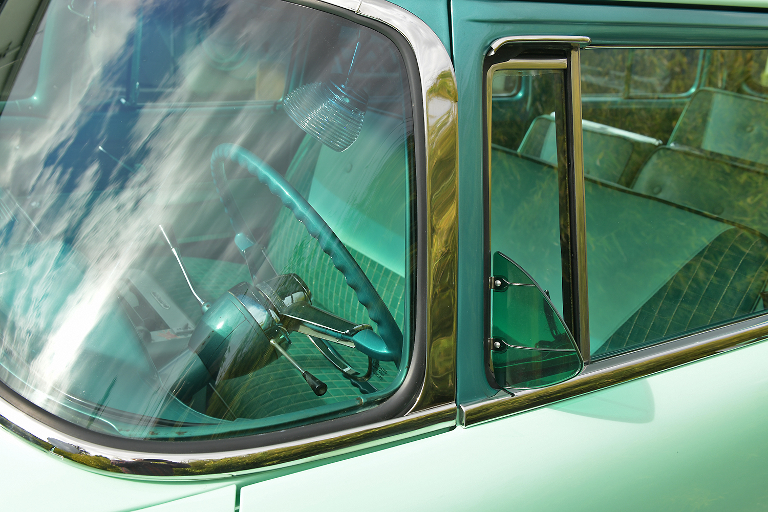 The interior is done in "Green Square Chromatex". The front seat was redone using NOS materials, the remainder is original.