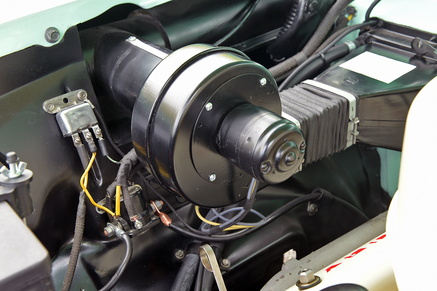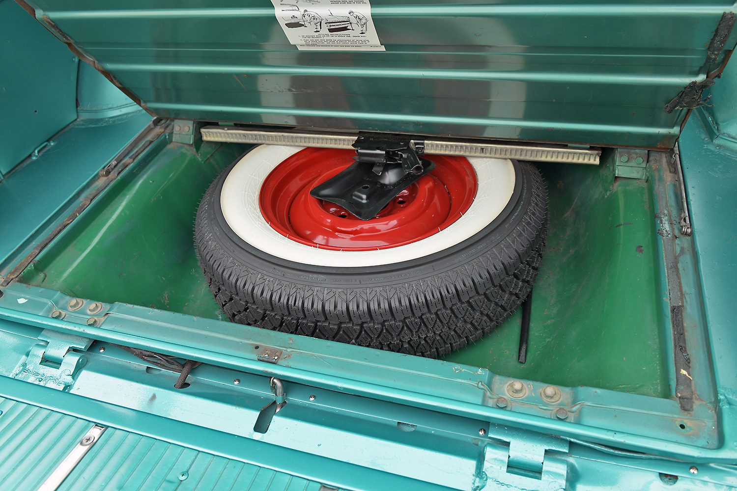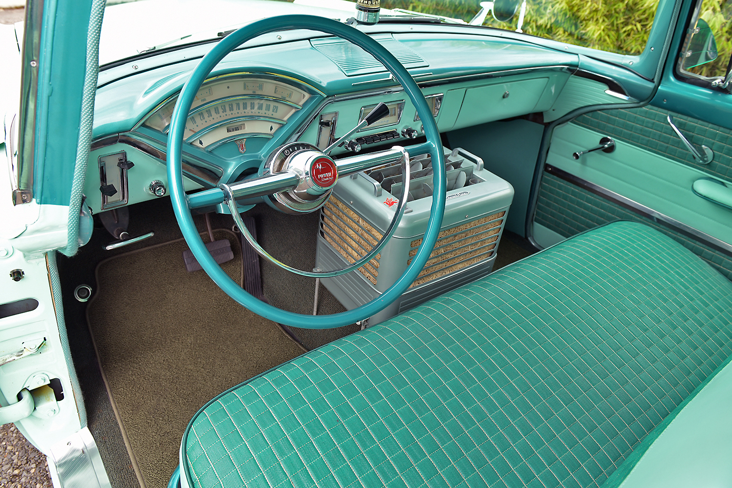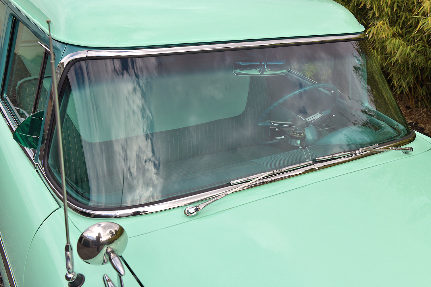 The interior is done in "Green Square Chromatex". The front seat was redone using NOS materials, the remainder is original.