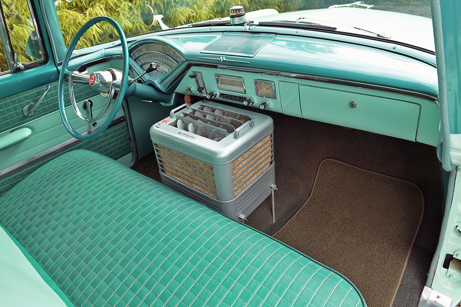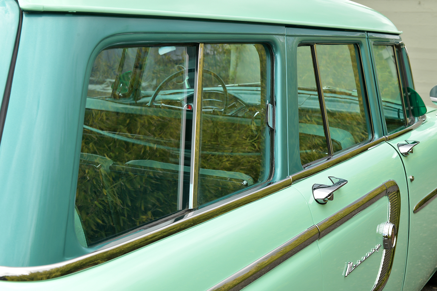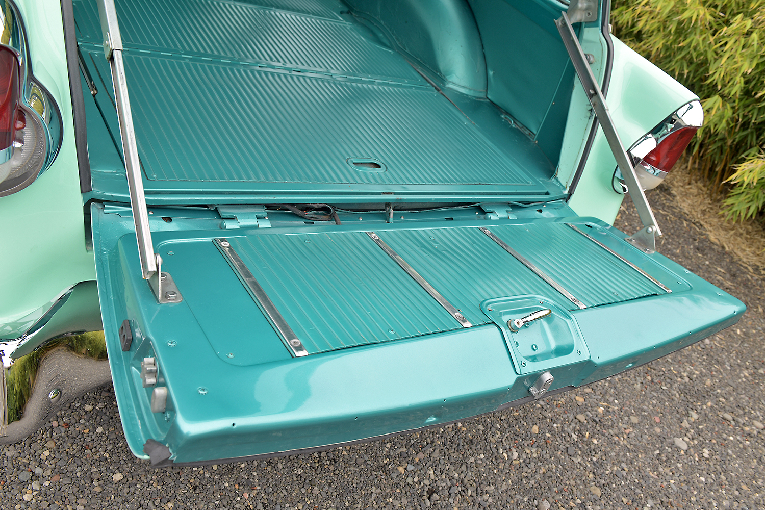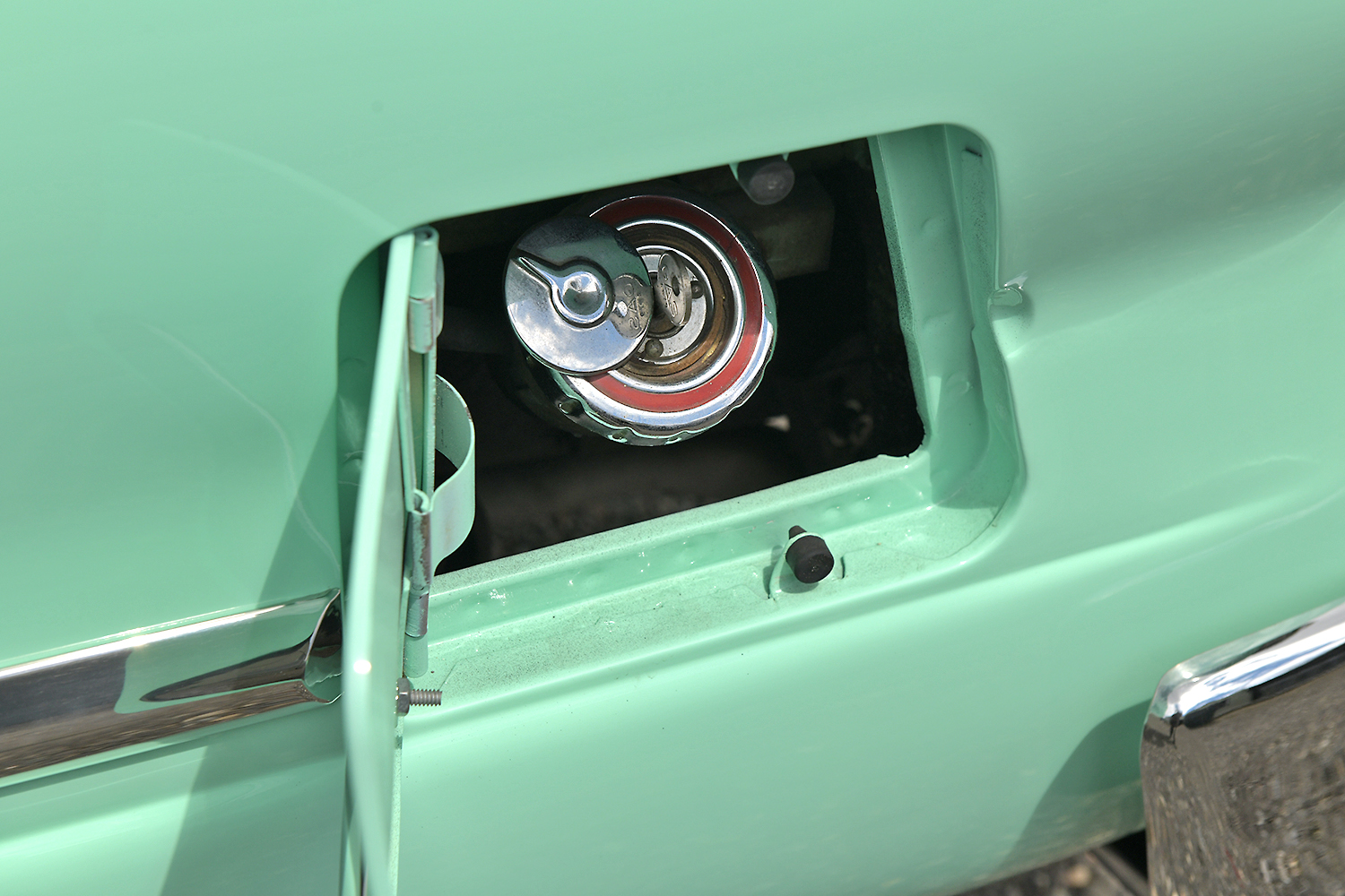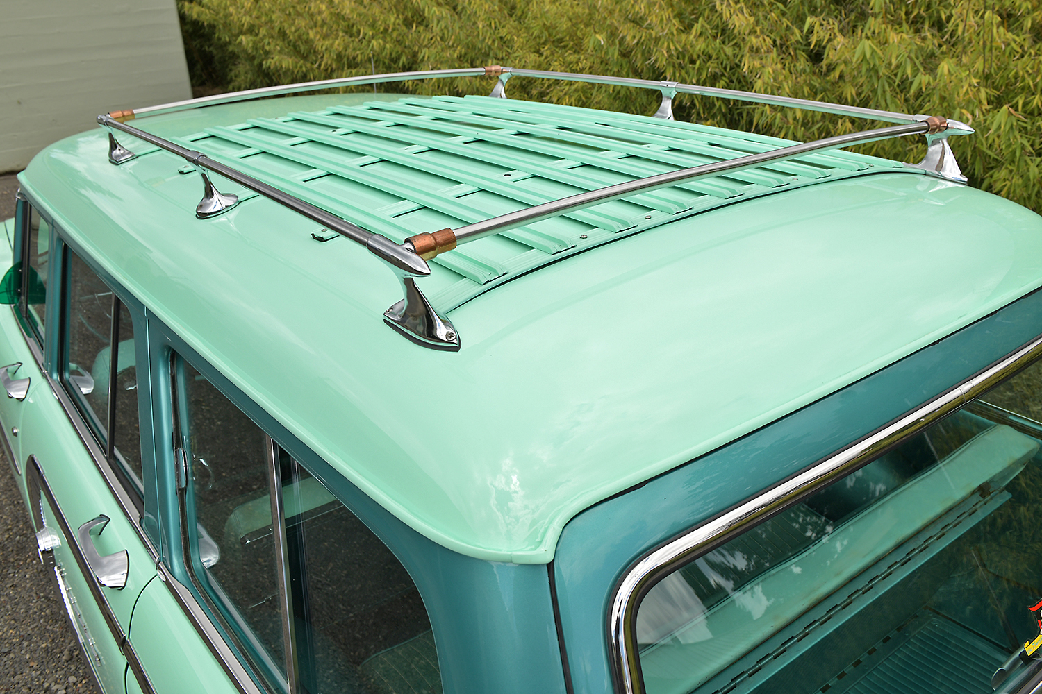 The interior is done in "Green Square Chromatex". The front seat was redone using NOS materials, the remainder is original.