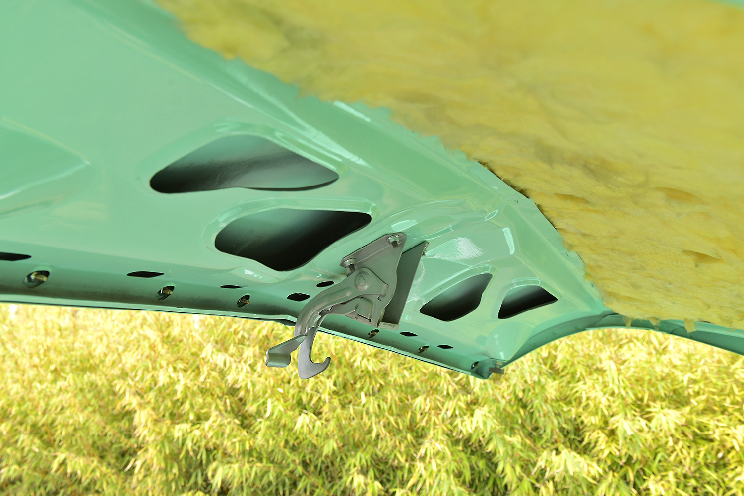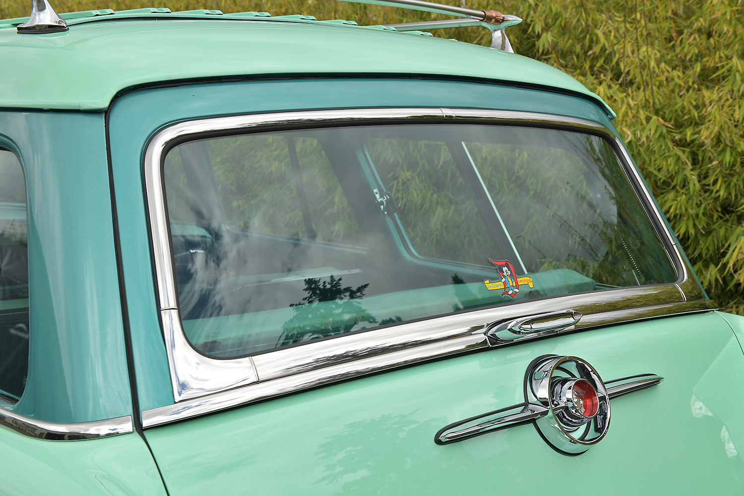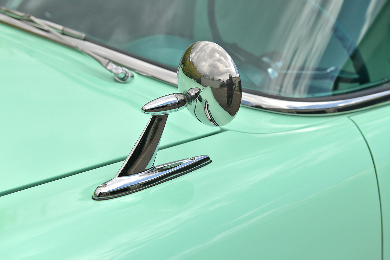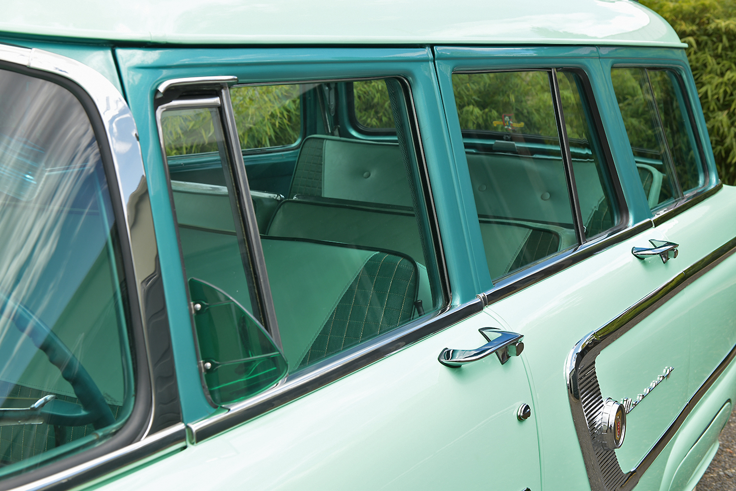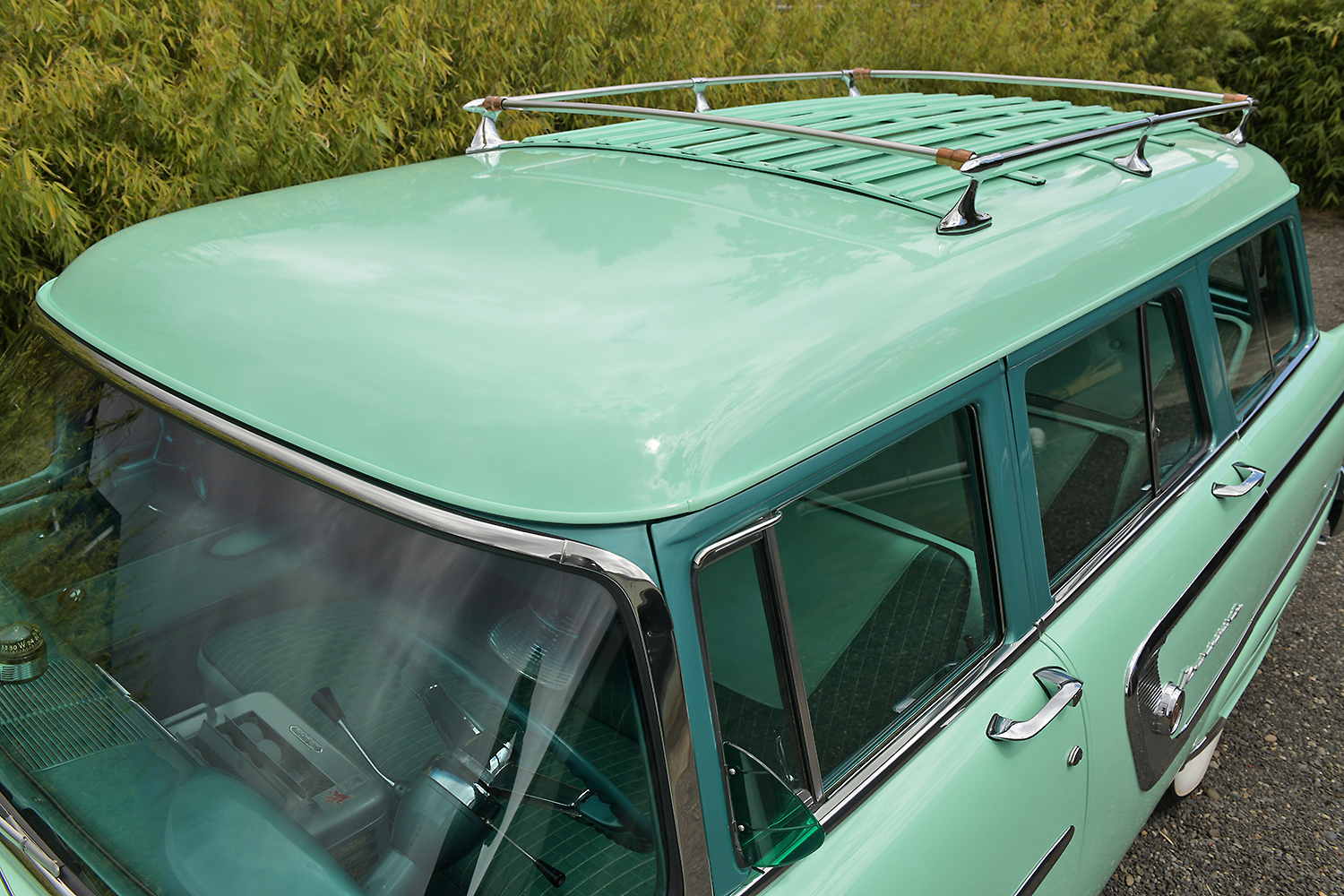 The interior is done in "Green Square Chromatex". The front seat was redone using NOS materials, the remainder is original.
