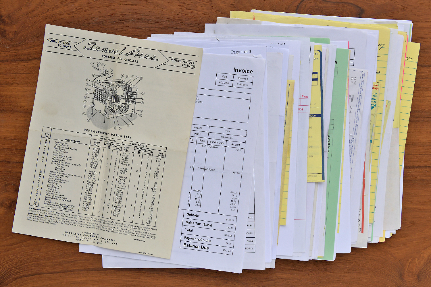 Great assortment of factory brochures and manuals, plus receipts and other paperwork is included.