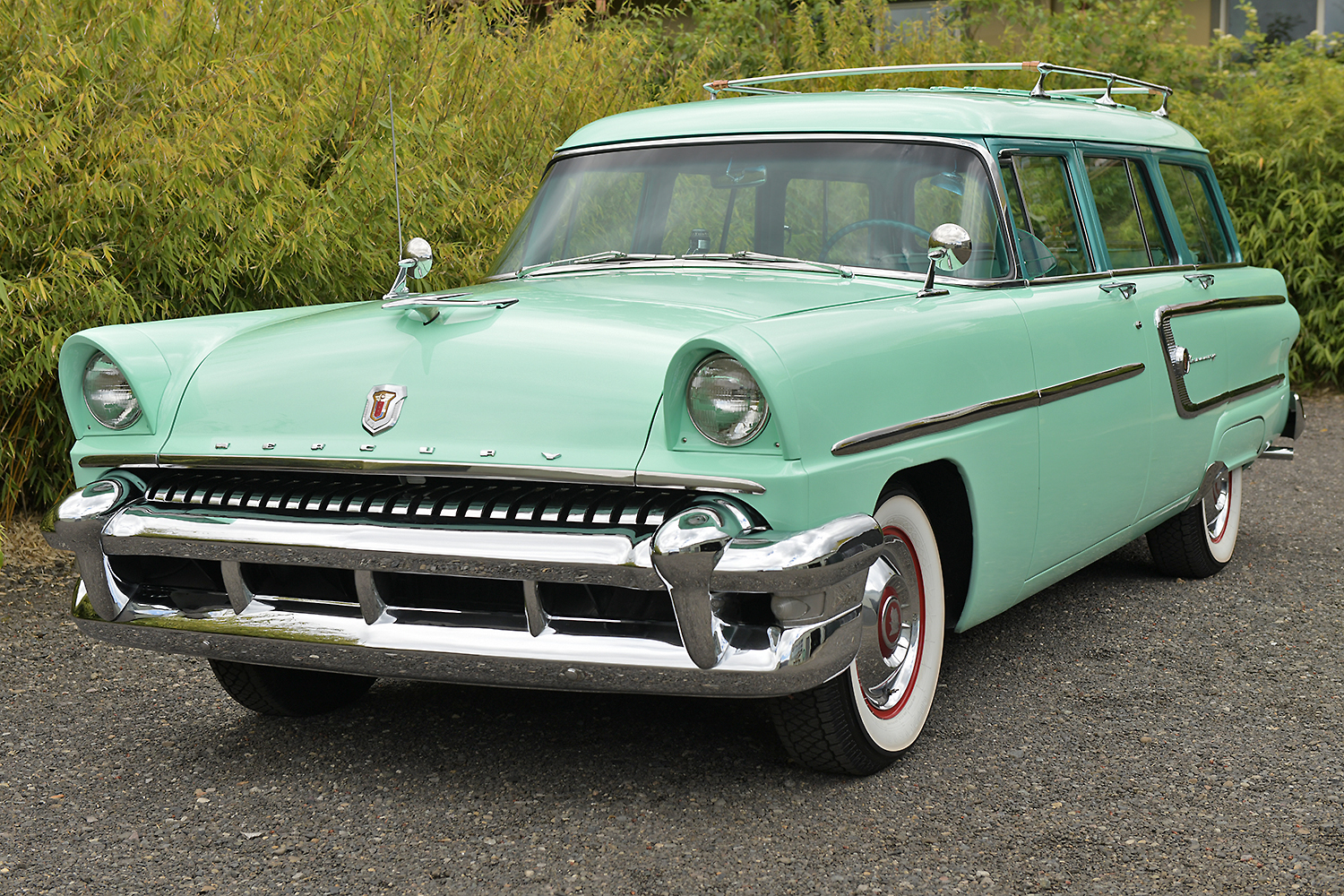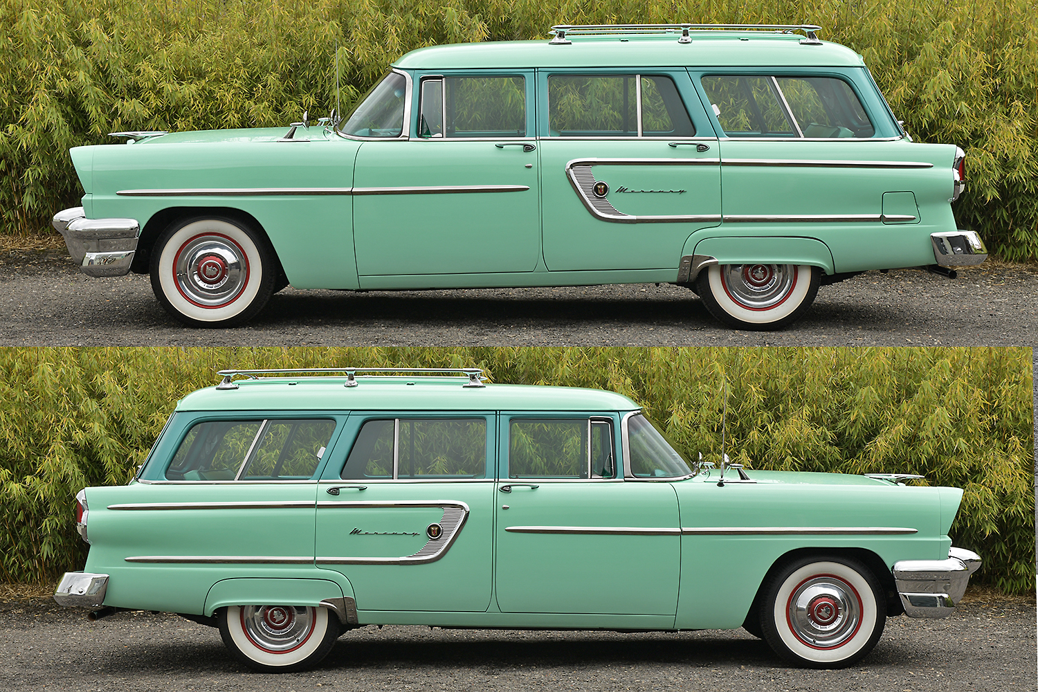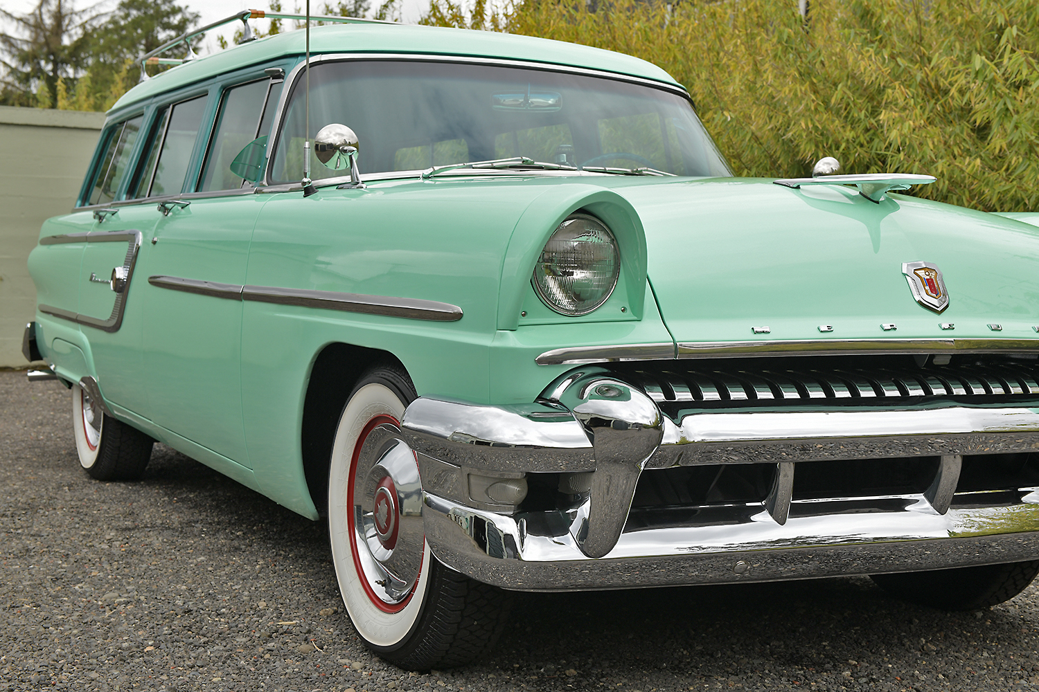 Up for sale is this hard to find Mercury wagon. Expertly refinished in its original colors of Sea Isle Green Metallic and Springdale Green, this 8 passenger wagon was restored to all stock specifications and looks showroom fresh. All of the chrome and stainless trim have been redone, all of the weatherstripping is new, and the car rides on a set of Goodyear Super Cushion Classic radials.