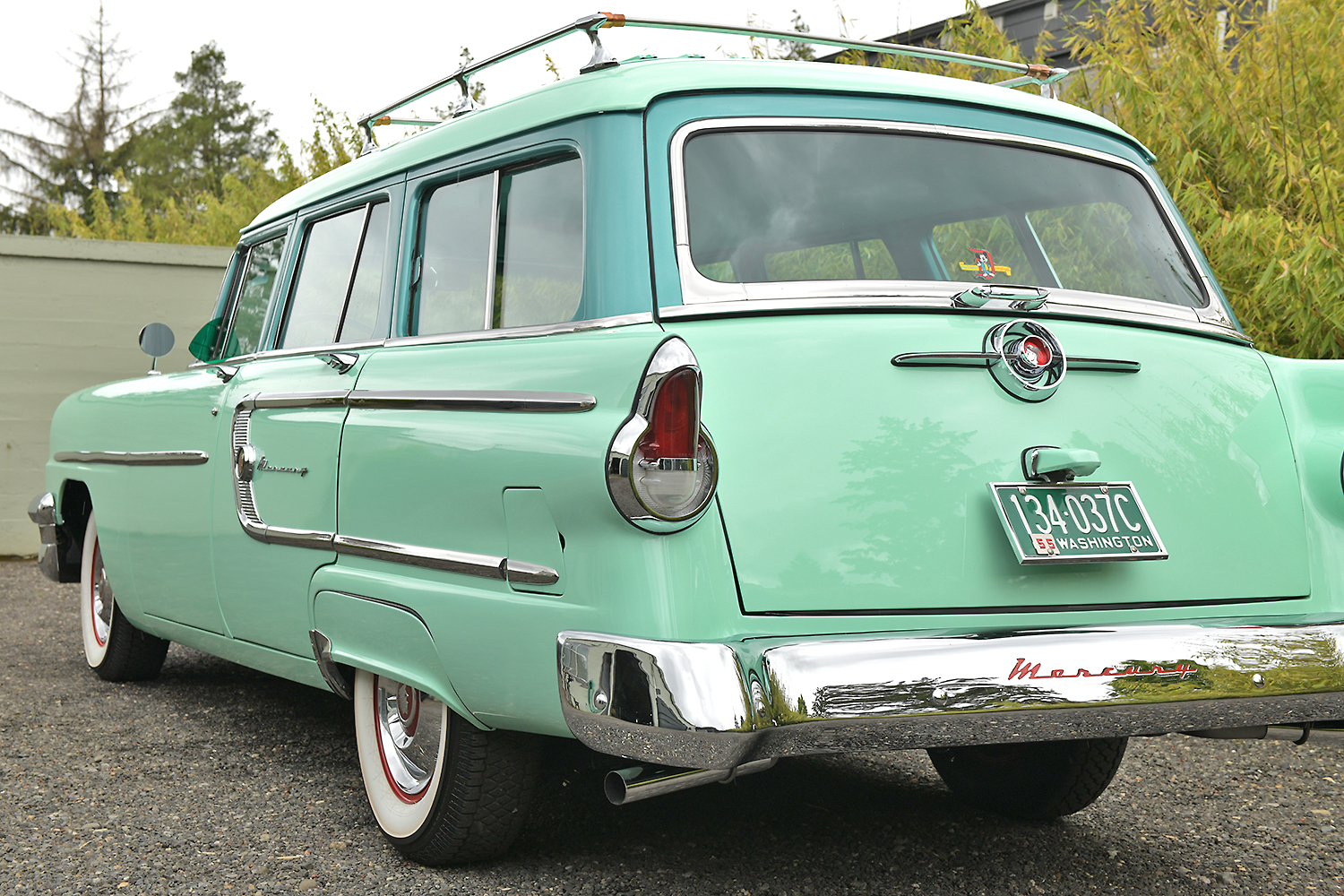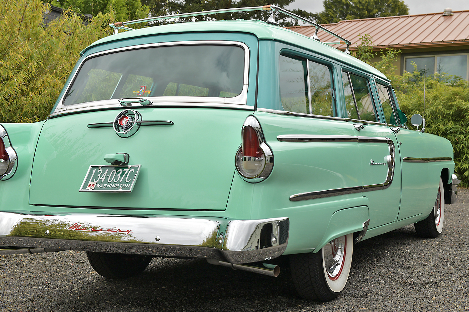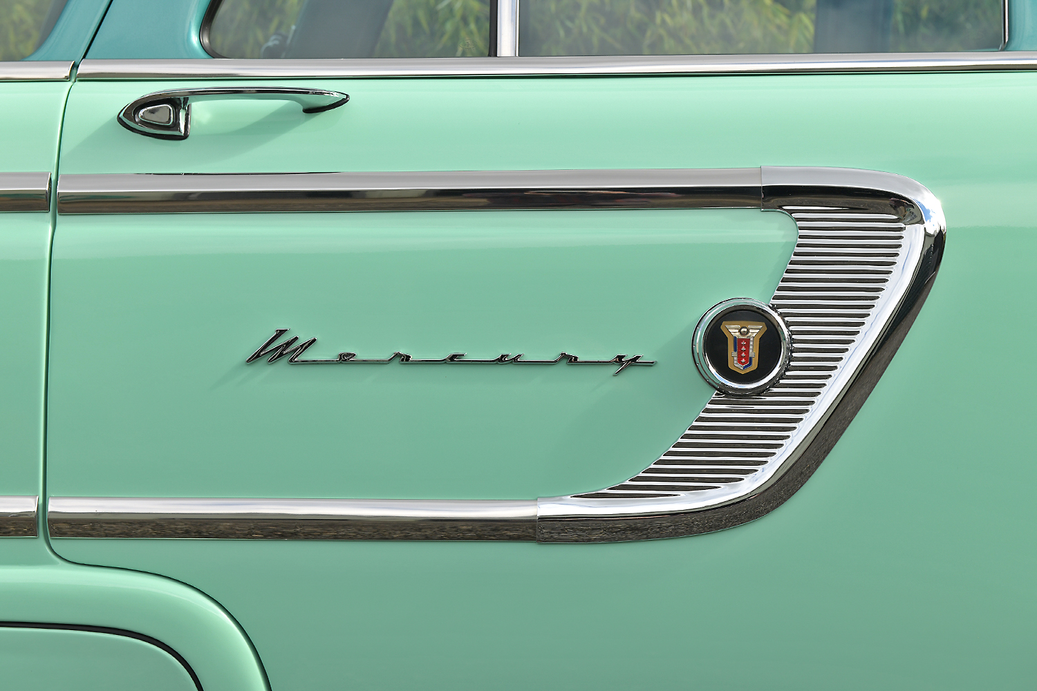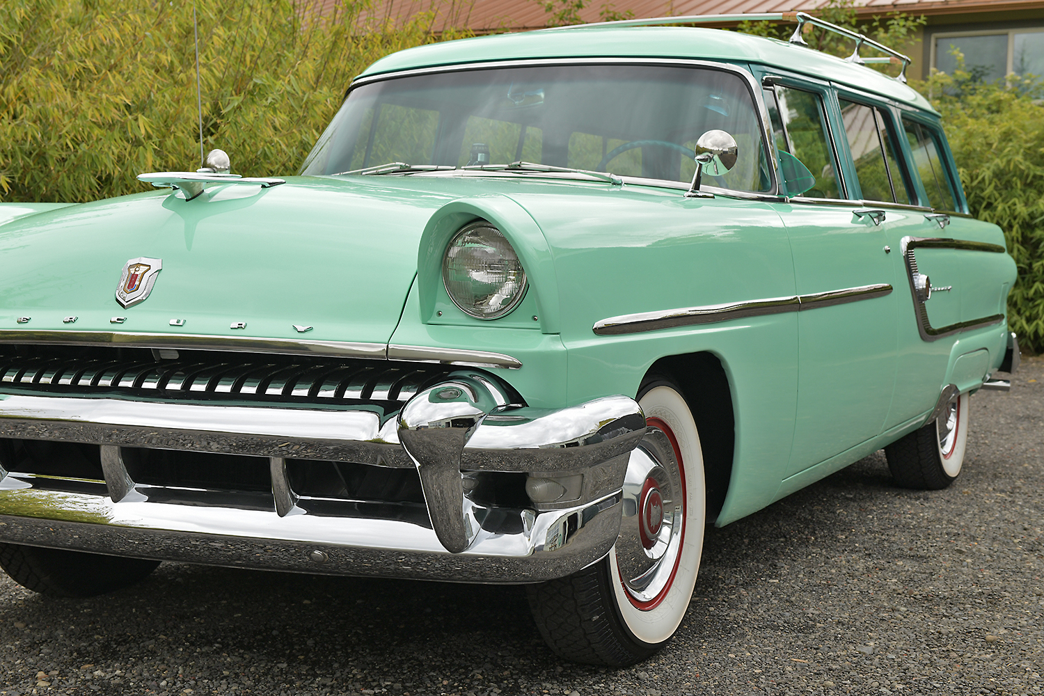 Up for sale is this hard to find Mercury wagon. Expertly refinished in its original colors of Sea Isle Green Metallic and Springdale Green, this 8 passenger wagon was restored to all stock specifications and looks showroom fresh. All of the chrome and stainless trim have been redone, all of the weatherstripping is new, and the car rides on a set of Goodyear Super Cushion Classic radials.