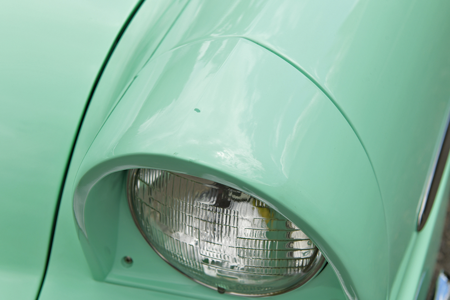 There's one paint chip on the top of the headlight shroud, shown here. That's about the only flaw to point out on the car, it's that good. The paint quality is excellent, with no tape lines, runs, orange peel or other imperfections. Prep and application were first rate.